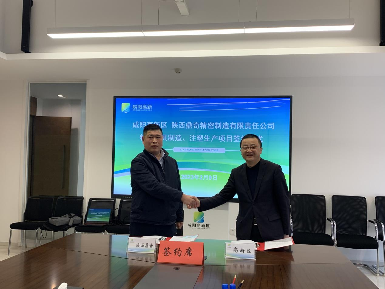 2月9日下午,管委会主任助理陈大鹏代表咸阳高新区与陕西鼎奇精密制造有限责任公司正式签订精密模具制造、注塑生产项目入区协议。