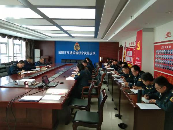 11月15日下午,咸阳市交通运输综合执法支队党总支组织召开支队党总支(扩大)会议,认真学习宣传贯彻党的十九届六中全会精神。