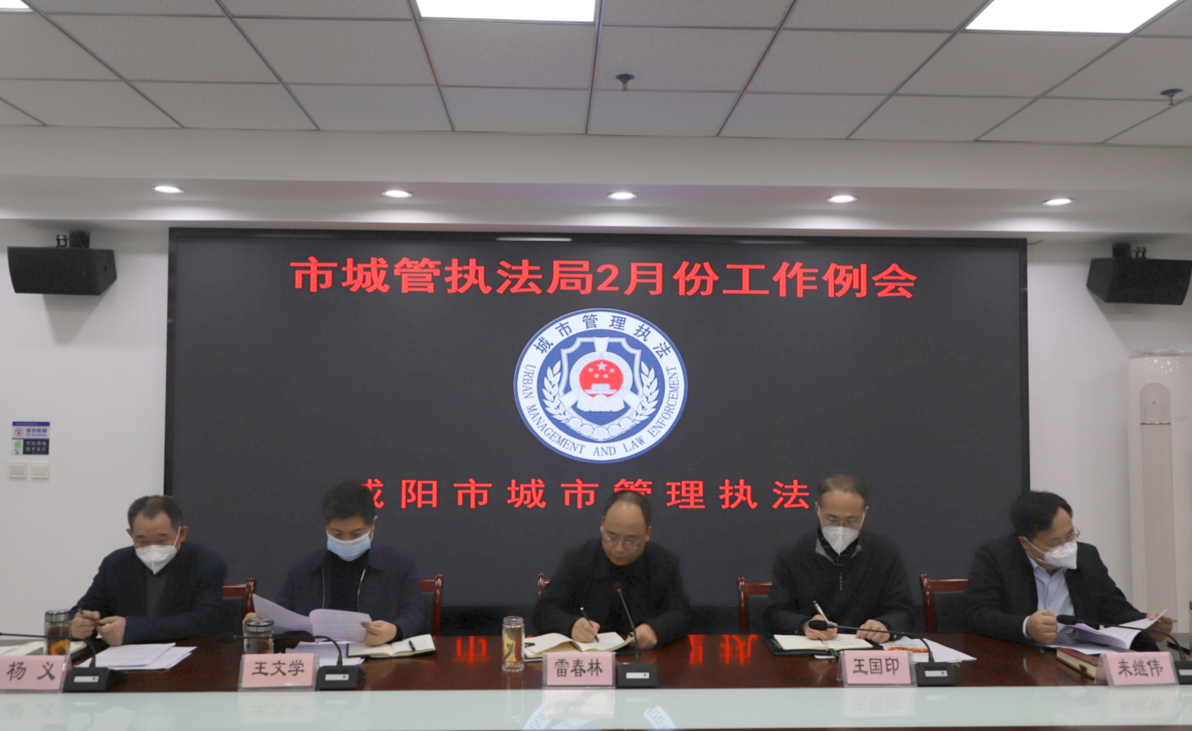 2月1日上午,市城市管理执法局召开二月份工作例会,总结元月份工作,安排部署二月份工作。局党组书记、局长雷春林主持并讲话,局领导、局属各单位和机关各科室(垃圾分类办、停车办)负责人参加会议。